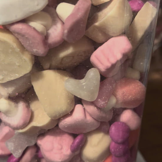 "Indulge in the perfect blend of sweet and tangy with our Pink & White Mix! With a variety of delicious sweets, this pick n mix is available in 250g, 500g, 750g and 1kg options, making it the perfect treat for any occasion. Satisfy your sweet tooth with our delectable mix!"